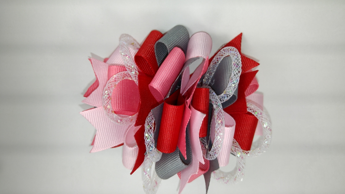Size: 4.5 Inches Colors: Lt. Pink, Coral, Red, Gray Accents: White Deco Tubing Hardware: Buyers Choice