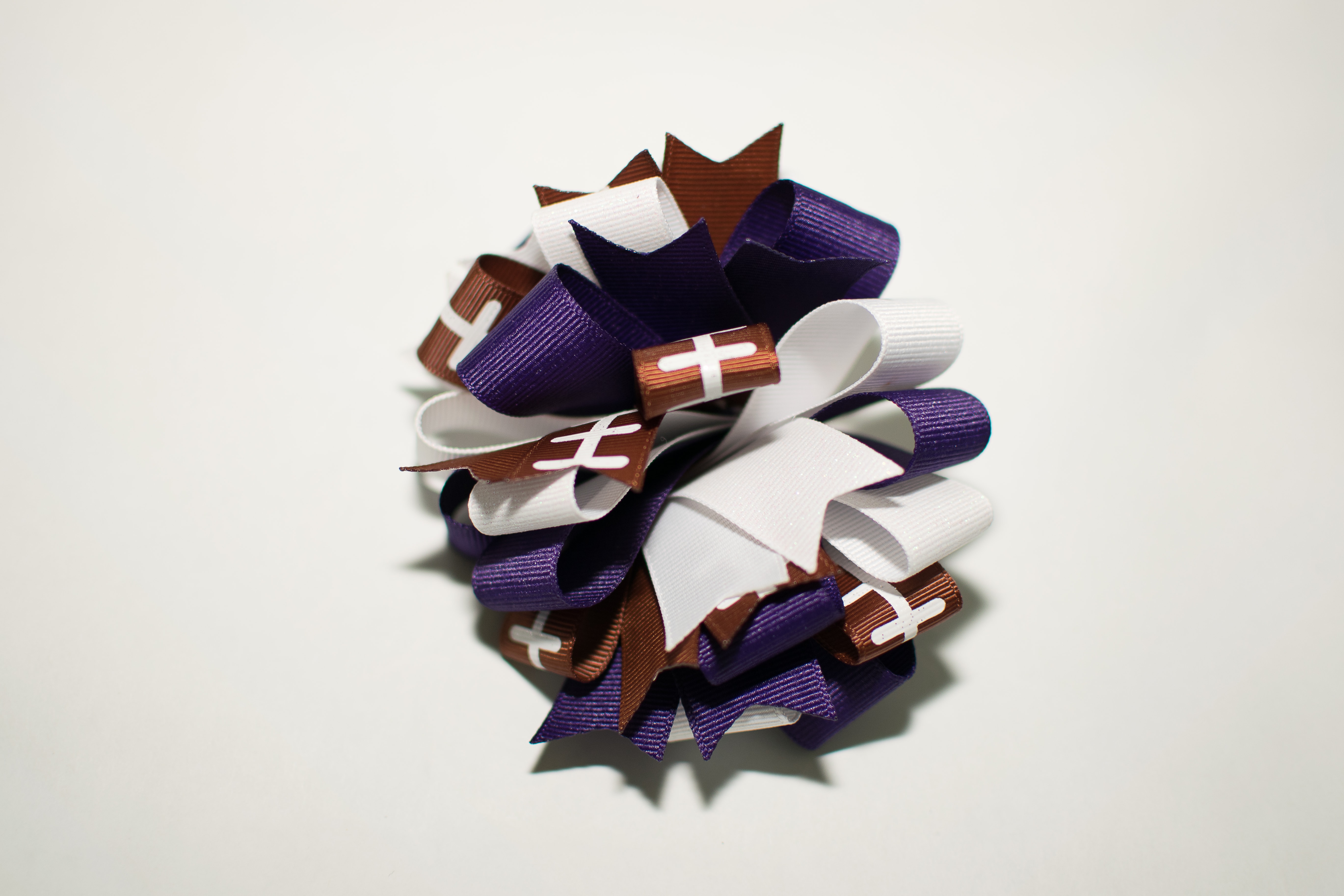 Size: 4.5 Inches Colors:Team Colors and Football Ribbon Hardware: Alligator Clip